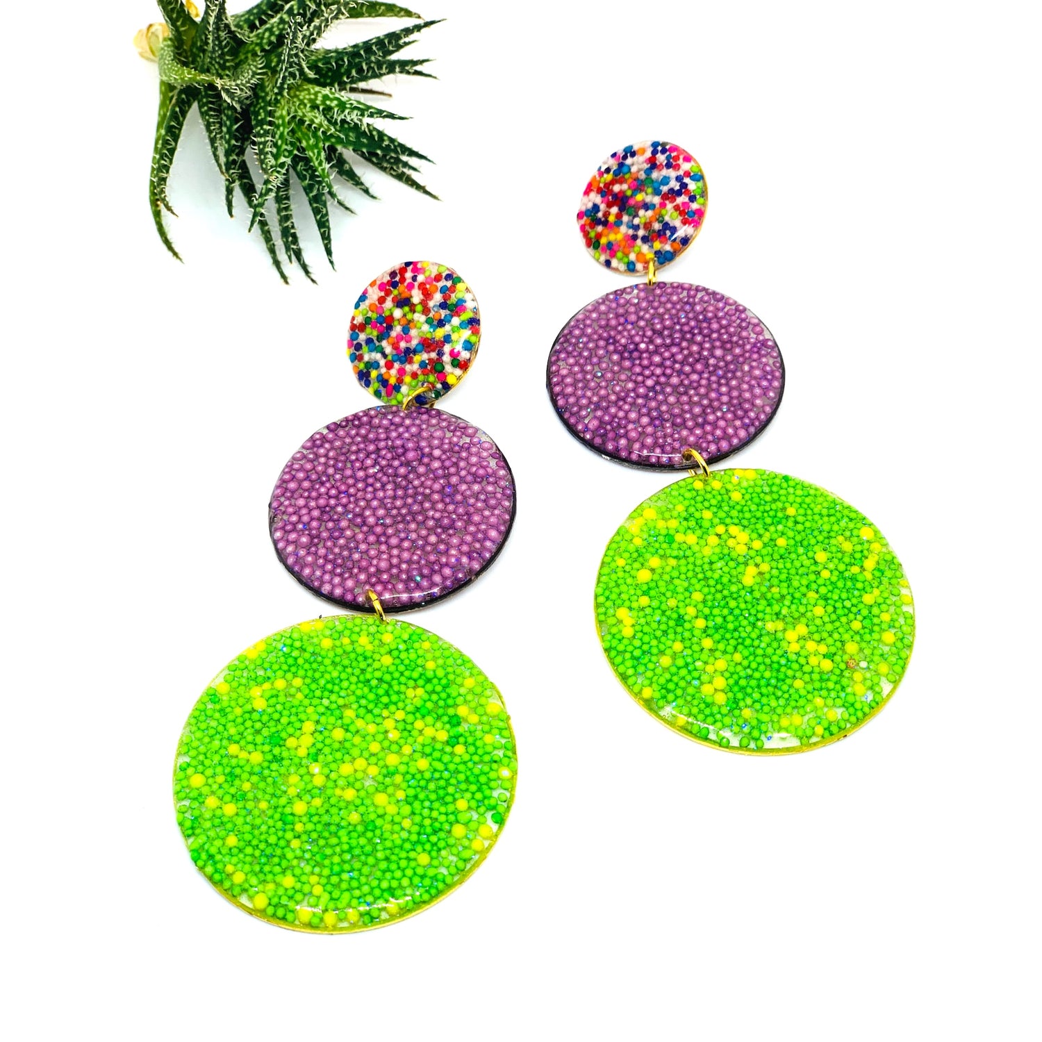 Real colorful sprinkles are used to create mosaics of sugar in resin