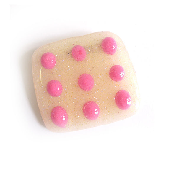 A real button candy pin! Made with the paper and all encased in our signature glitter resin.