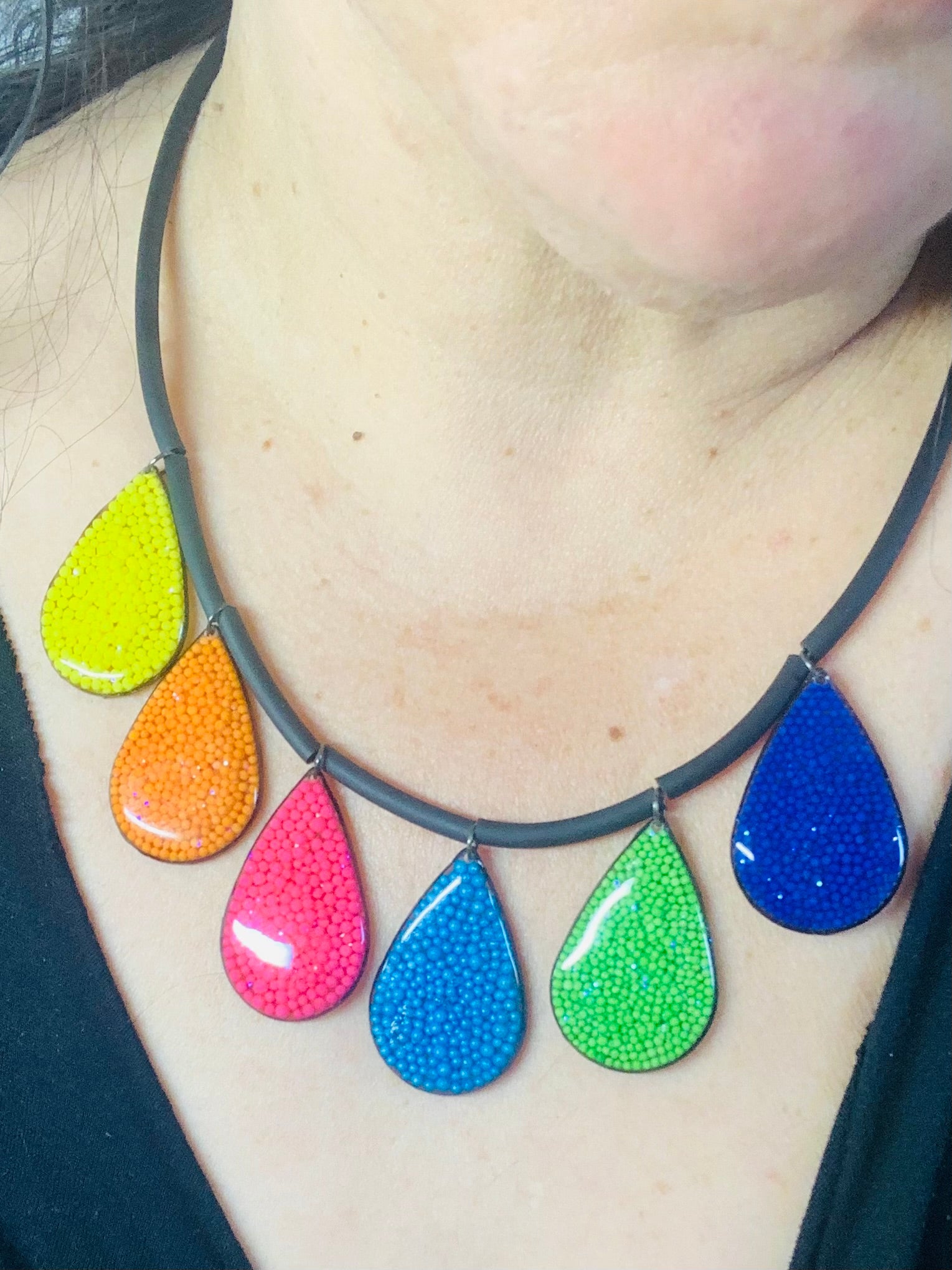 Made with real sprinkles in our signature glitter resin. Rubber and nylon.
