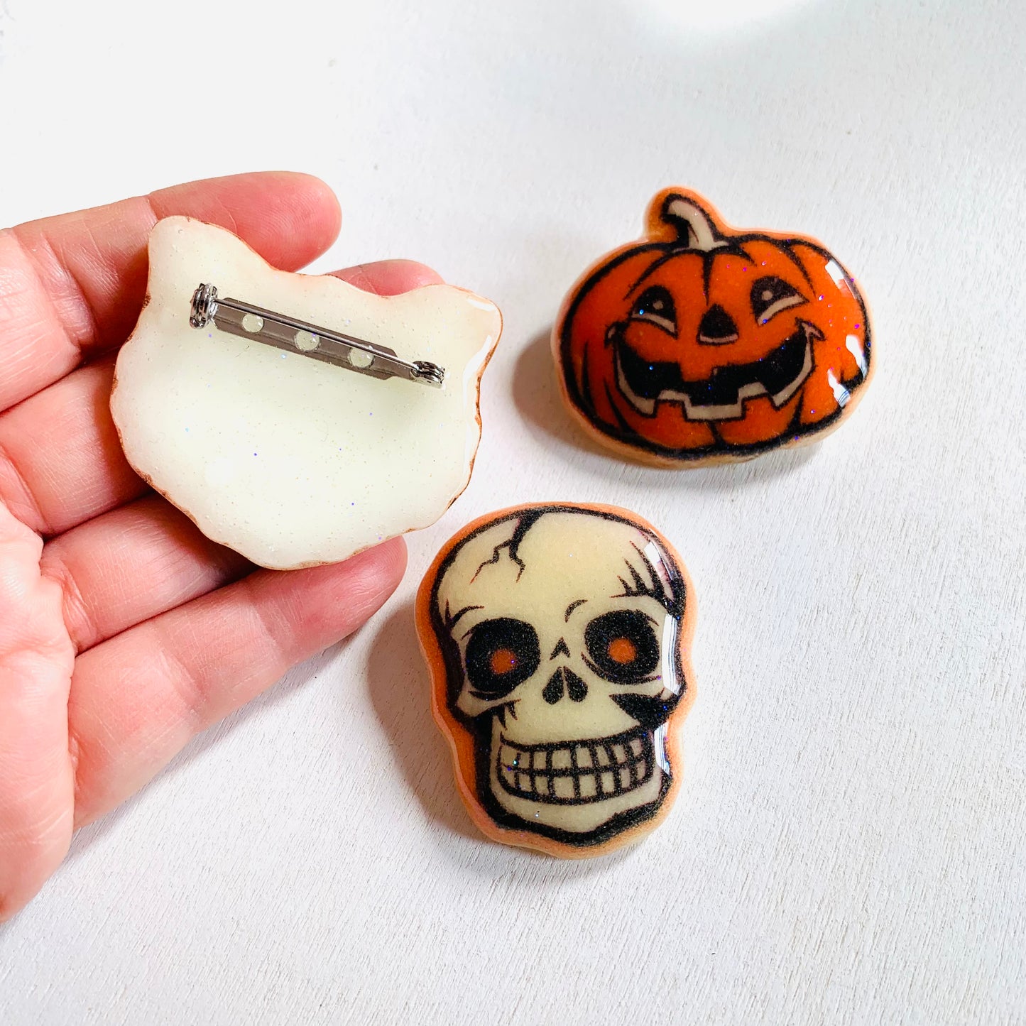 Sugar Cat Pumpkin Skull Brooch